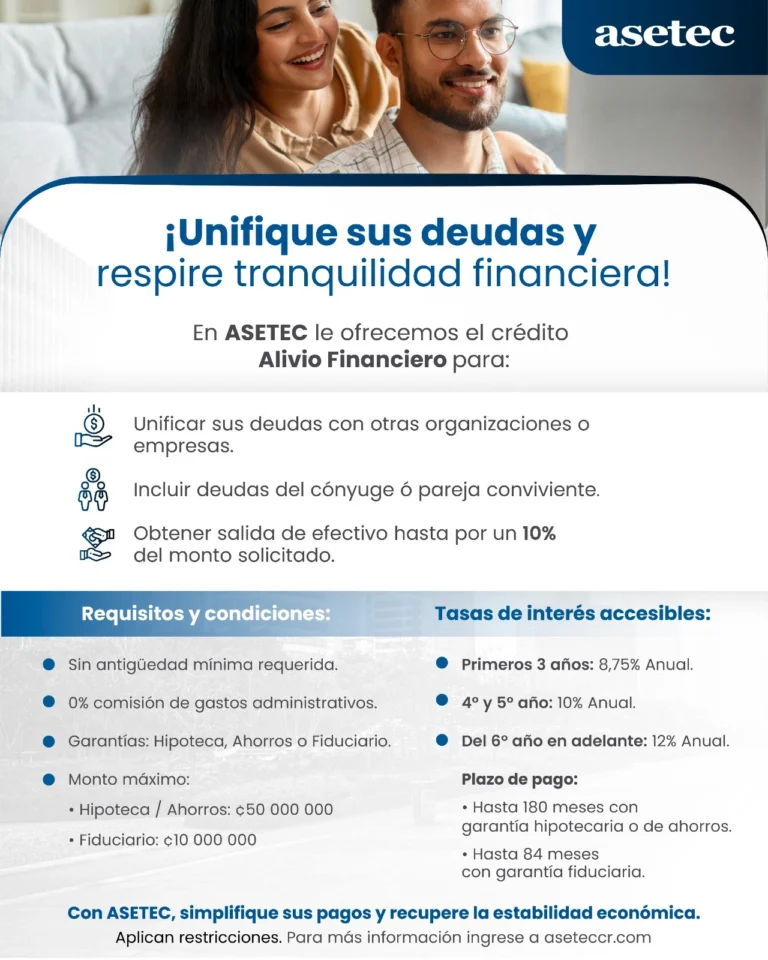 En nuestra Asociación Solidarista, contamos con una gran variedad de beneficios para nuestros a asociados, los miembros activos de la Asociación tienen derecho a utilizar las diversas áreas de crédito que disponemos, también mantenemos convenios con empresas que venden bienes y servicios y que el asociado puede utilizar cuando guste, los asociados cuentan con la Cafetería El Lago que se encuentra al costado Sur del lago del campus de TEC donde pueden disfrutar de variedad de comidas…